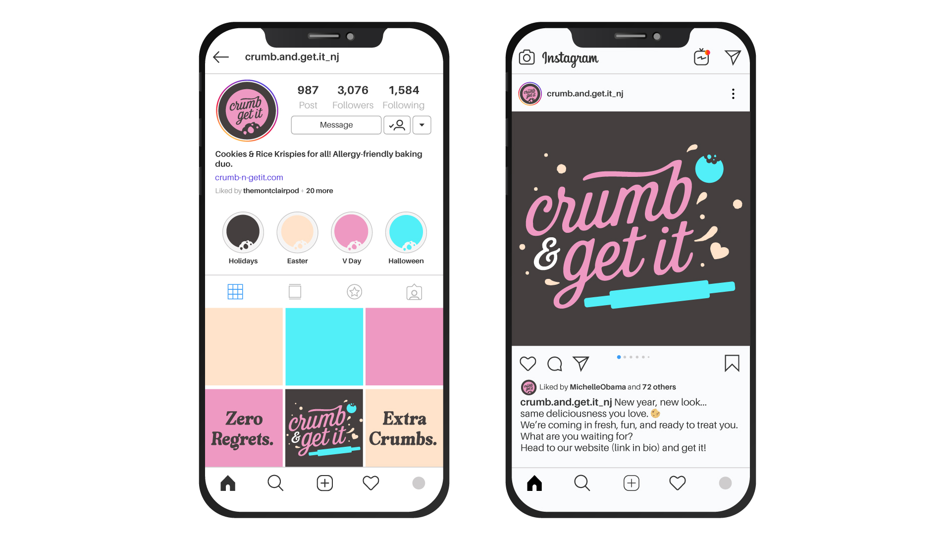 Helping small businesses launch with a fresh brand identity and visual style has always been one of my favorite side projects. So when a friend told me they were starting a new cookie business, I was all in. Built around quality ingredients and allergen-friendly recipes made in New Jersey — meet Crumb & Get It.